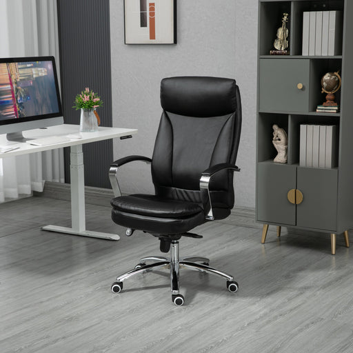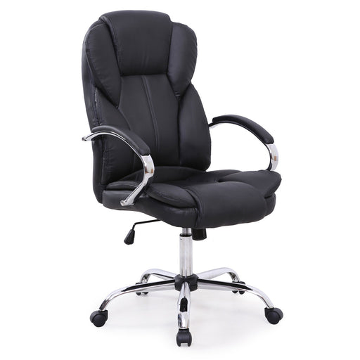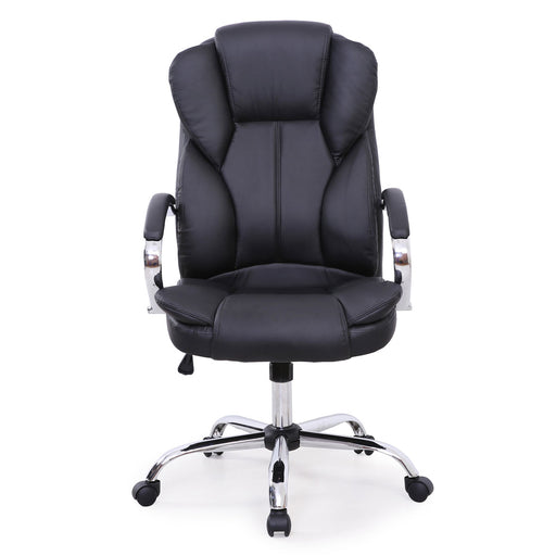 SVITA OFFICE COMFORT Bürostuhl aus schwarzem Kunstleder und silbernem Metallfuß- Ergonomischer Schreibtischstuhl für Home-Office und Büro - Gesamtm...