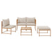 Dieses elegante Polyrattan-Set vereint modernes Design mit funktionaler Vielseitigkeit. Das Herzstück ist das modulare Design: Nutzbar als 3-Sitzer-Ecksofa mit gemütlicher Chaiselongue oder flexibel als Einzel-Sessel und 2-Sitzer-Sofa. Damit passt sich die Lounge perfekt an Terrasse, Balkon oder Garten an.